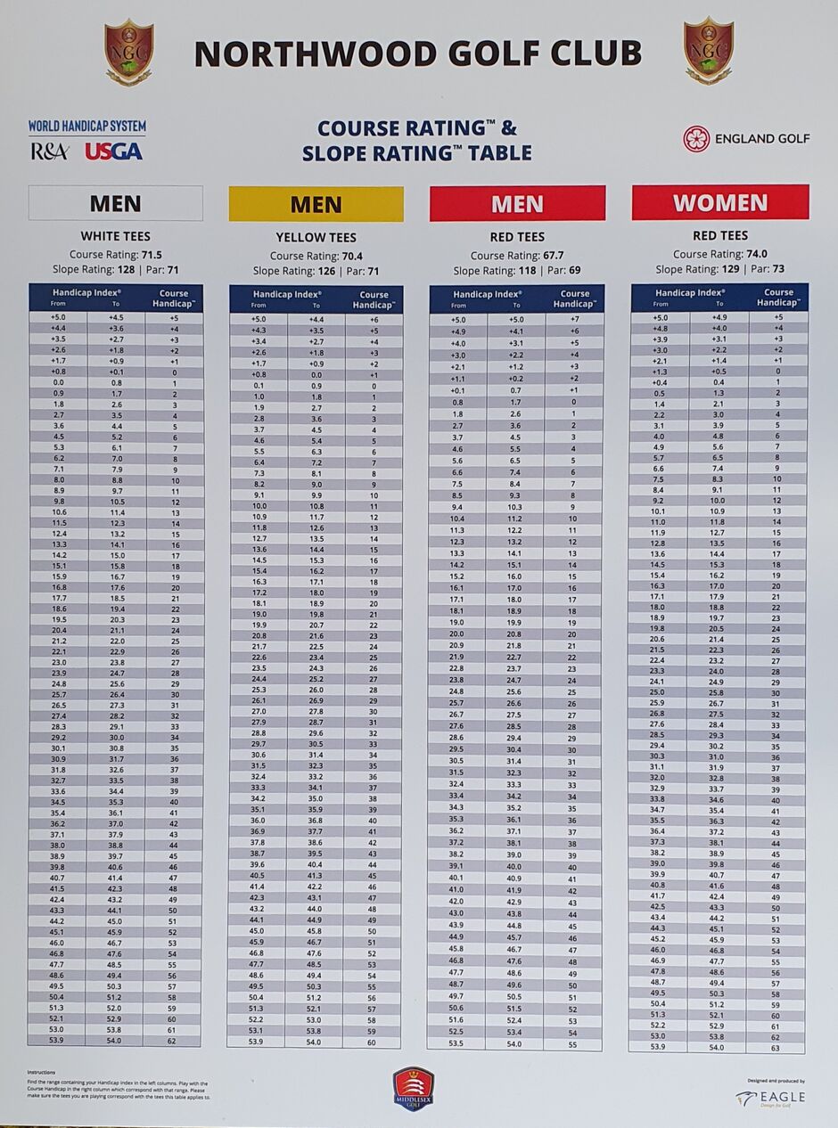 | Hole | White | Par | SI | Yellow | Par | SI | Red | Par | SI | Green | Par | SI |